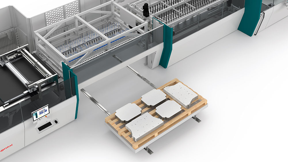 The manipulator centers the sheet when machining begins. It has a maximum stroke of 3030 mm which allows sheets of up to 3048 mm to be machined without regripping, and has 9 pneumatic pincers with independent opening and closing, extending the possibility of machining nests without any holding scrap and reducing scrap. It has a patented hand-over system that modulates the dynamics according to the weight of the sheet metal being processed.